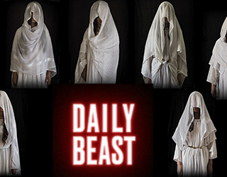 Photographs of young Iraqi Yazidi women who were enslaved by ISIS and taken to Syria, published alongside lengthy texts that recount their stories, underline a particularly savage migration. The women are shown in white bridal dresses to restore a sense of purity, while their faces are intentionally obscured by veils. Seivan M. Salim, a female photographer made the images and conducted the painful interviews.